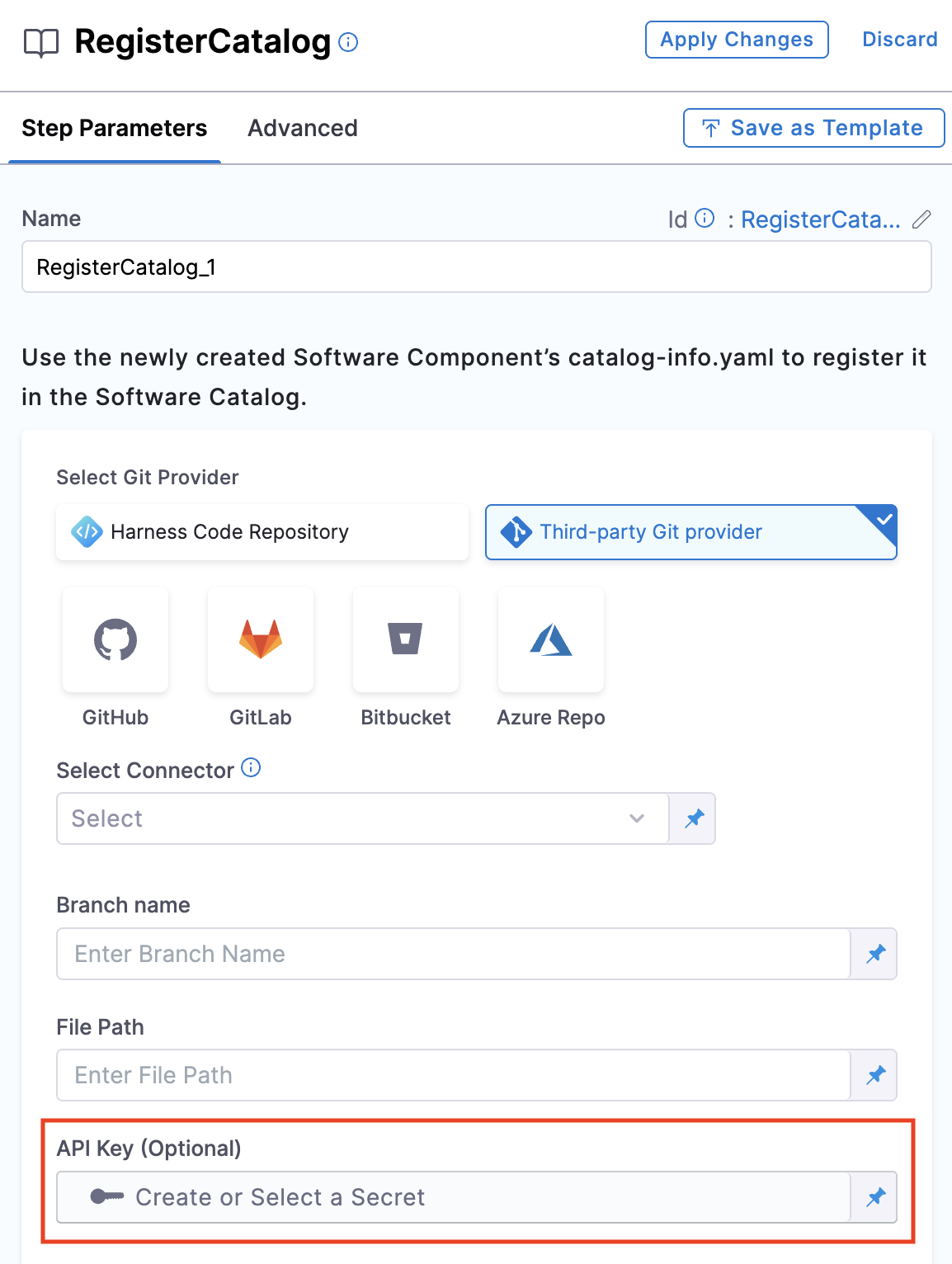 : Used to push the service/application created using Cookiecutter step along with the catalog-info.yaml in the repo you created in previous step.registerCatalog