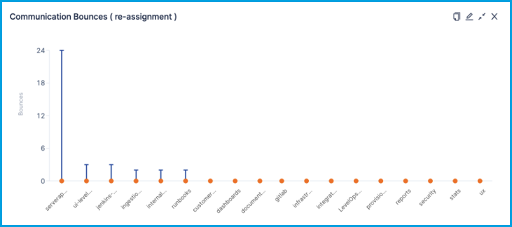 Bounce describes tickets that are reassigned to a previous assignee or return to a previous stage. Bounce can occur if an issue isn't triaged correctly initially, or if the issue doesn't have enough information to be assigned correctly. Excessive bounce can potentially cause missed SLAs and unnecessary resource utilization.